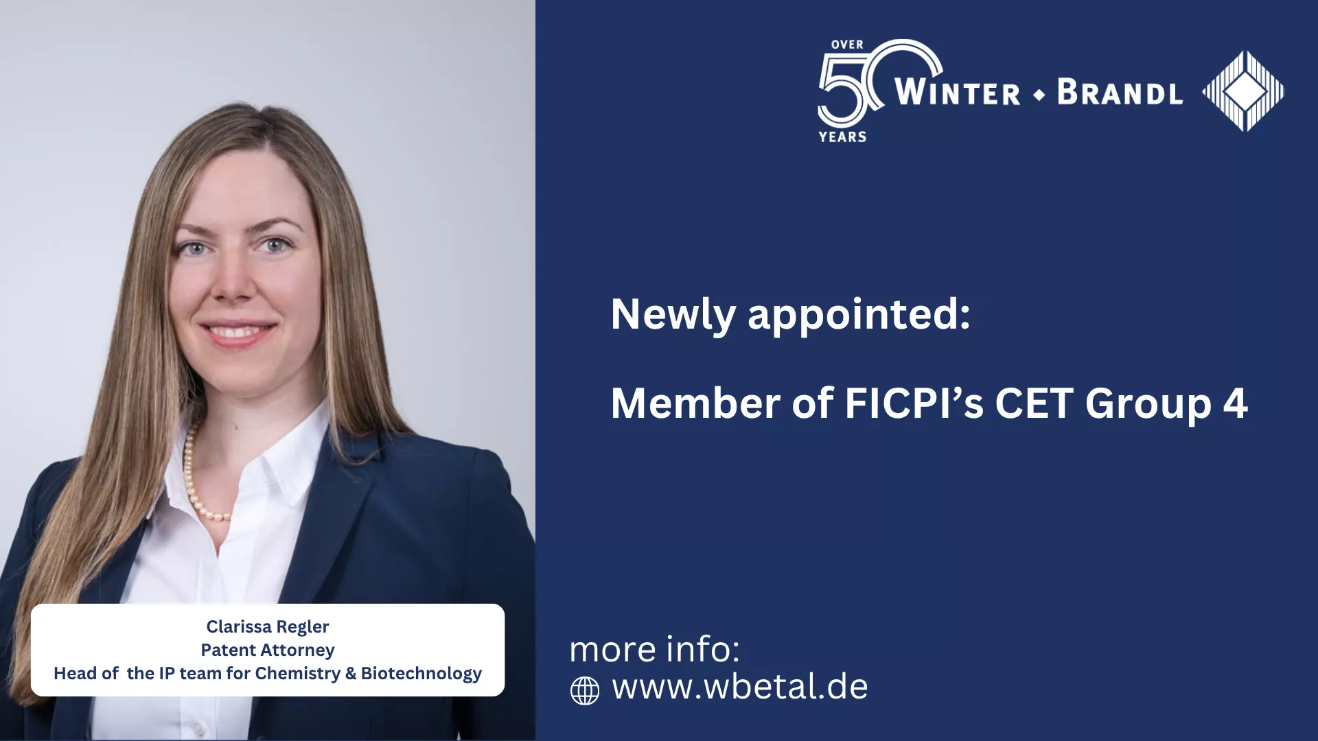 WINTER BRANDL Patentanwältin und Leiterin des IP Team Chemie/Biotechnologie Clarissa Regler wurde während des FICPI-Weltkongresses in Neapel zum Mitglied der FICPI CET-Gruppe 4 ernannt.