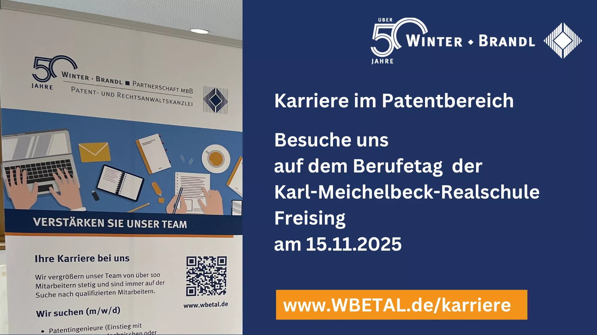 Karriere im Patentbereich – auch für Neueinsteiger geeignet!WINTER BRANDL ist am 15.11.2025 wieder auf dem Berufetag in der Karl-Meichelbeck-Realschule in Freising vertreten. Wir bieten Einstiegschancen für Auszubildende als Patentanwaltsfachangestellte.Unser Team freut sich auf interessante Gespräche mit Ihnen an unserem Messestand.Wir vergrößern unser Team stetig – die aktuellen Stellenangebote finden Sie …